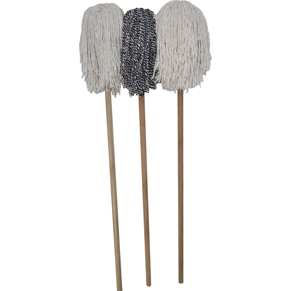 Fibra de algodón en color blanco o combinado con negro, fibras absorbentes para limpieza efectiva de pisos.
